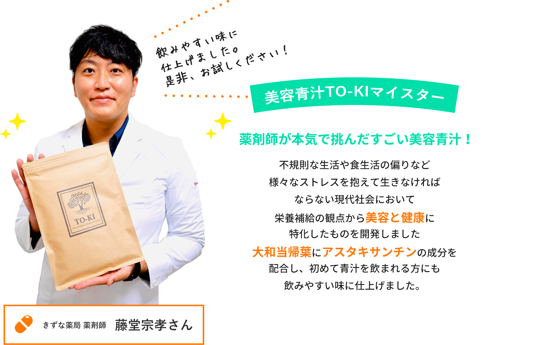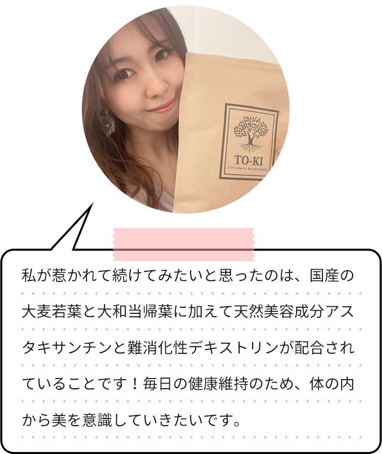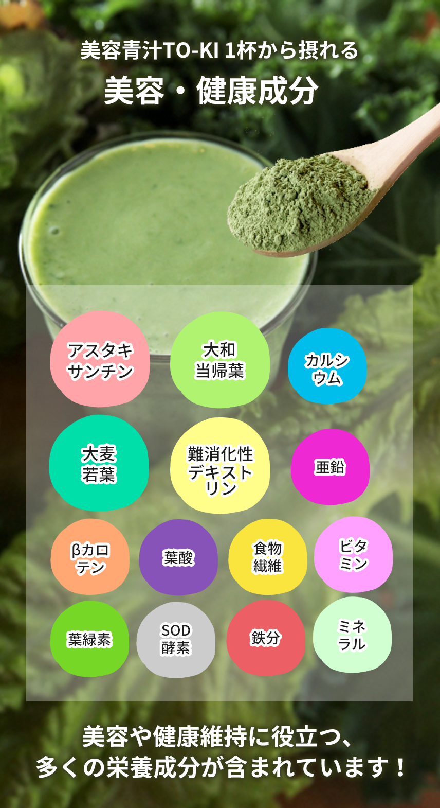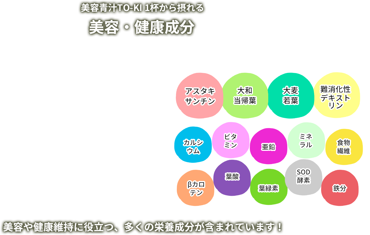 TO-KI⼀杯で美容と健康に役⽴つ成分がたっぷり⼊っています。