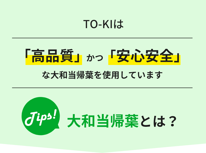 当帰(トーキ)の根は「⽣薬」や「漢⽅」として、葉は「⾷品」として幅広く使われています