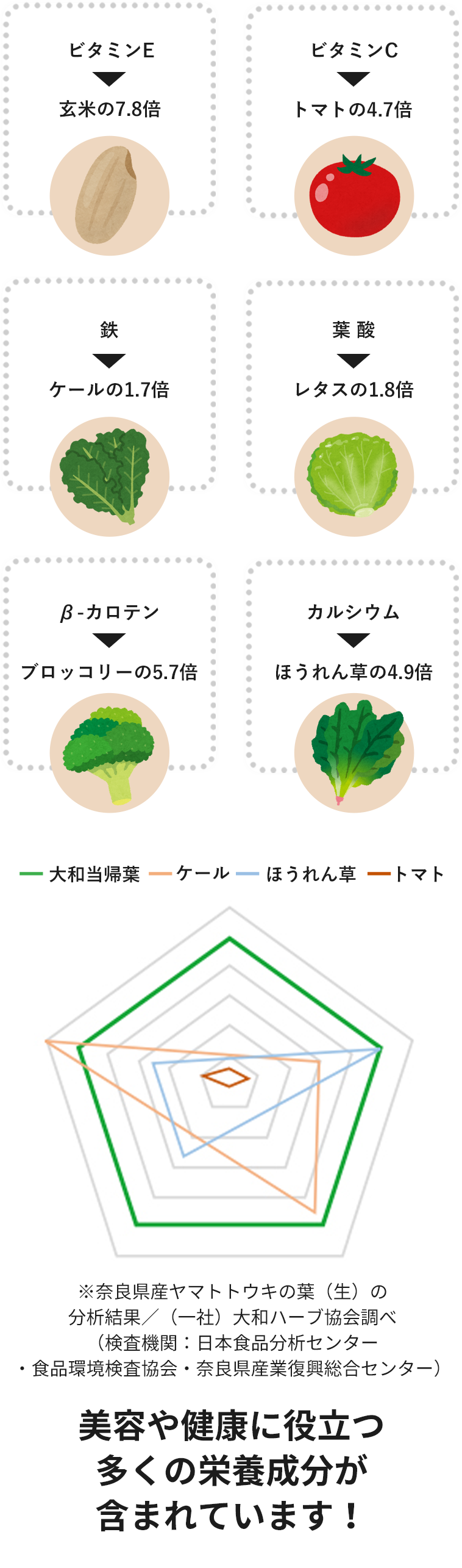 ※⼤和当帰葉は⽇本⾷品標準成分表2015年版(七訂)に収録されている全ての